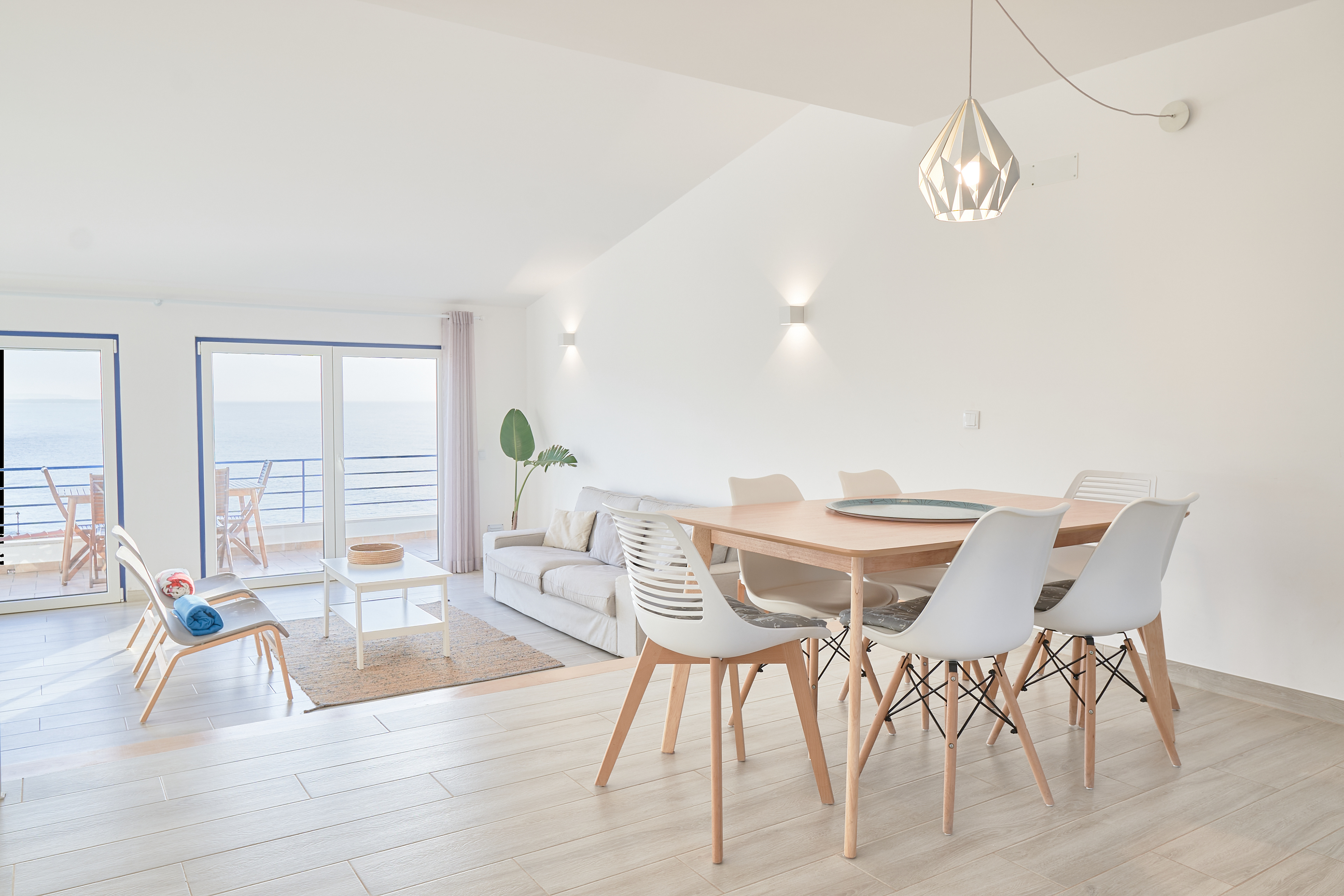 PT - Os espaços são intencionalmente abertos e arejados, com grandes aberturas de vidro que enquadram um panorama oceânico. A fotografia concentra-se em documentar esta filosofia de design: a criação de uma atmosfera serena e elegante que conecta os interiores com a paisagem costeira circundante.