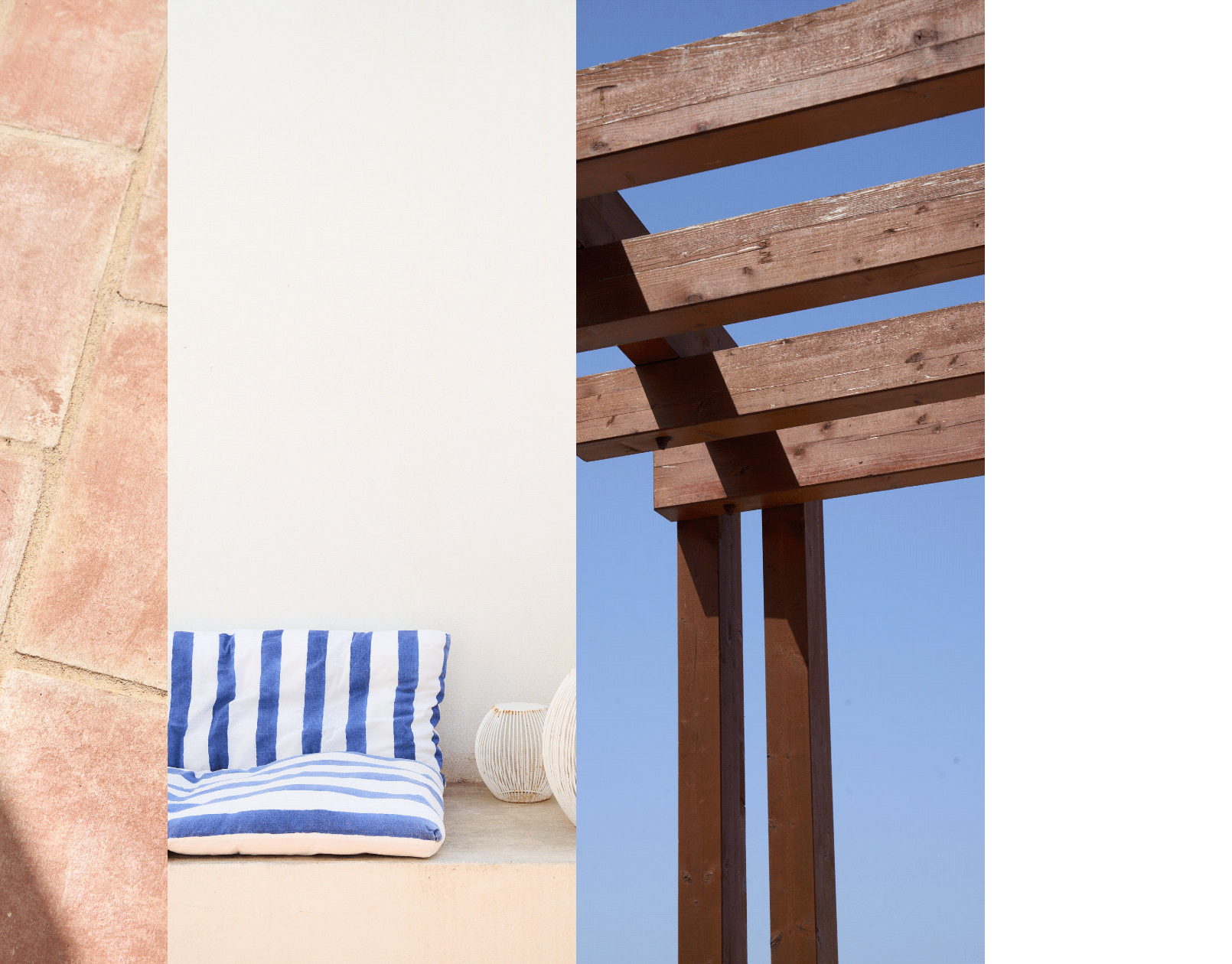 PT - A experiência termina no terraço privado, uma integração perfeita entre o interior e o exterior. Equipado com um espaço para refeições e uma rede de descanso, oferece uma vista elevada sobre a piscina e a zona de lazer das Casas do Moinho. Este espaço foi capturado para evocar o ritmo calmo e a serenidade mediterrânica da vida na aldeia.