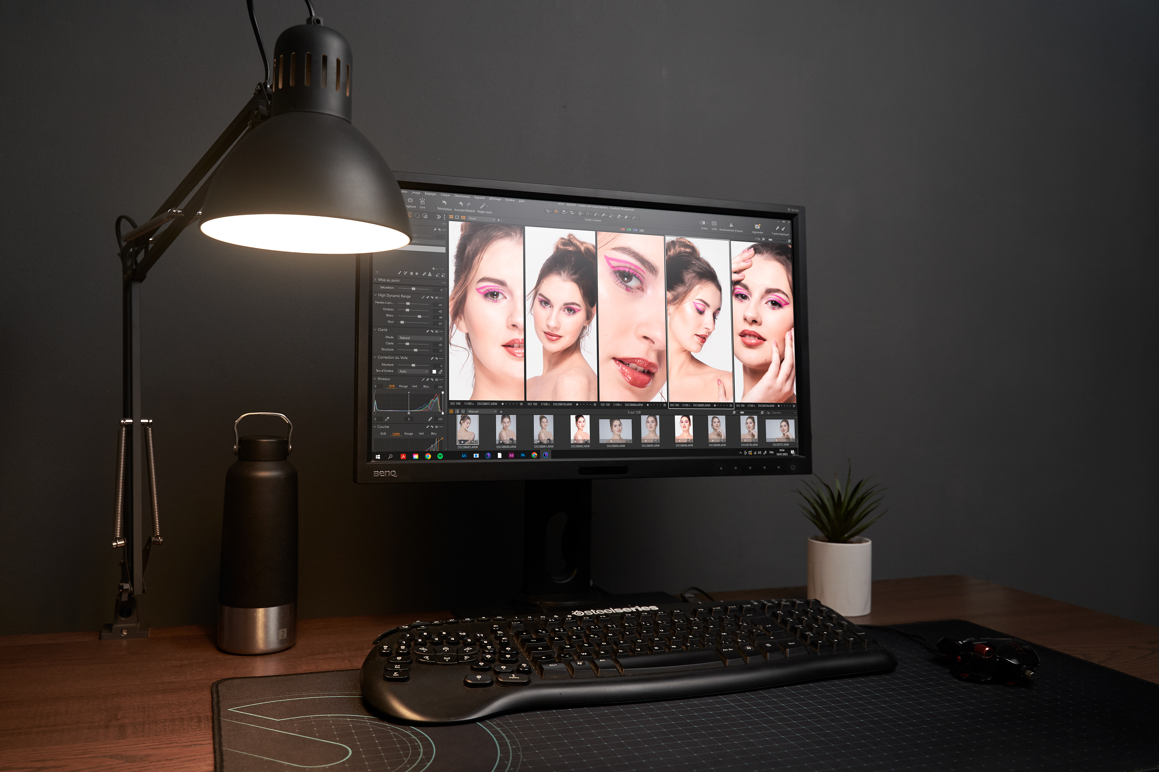 Techniques: High-key lighting, clamshell beauty setup for skin smoothing, and precision-focus on graphic textures.
