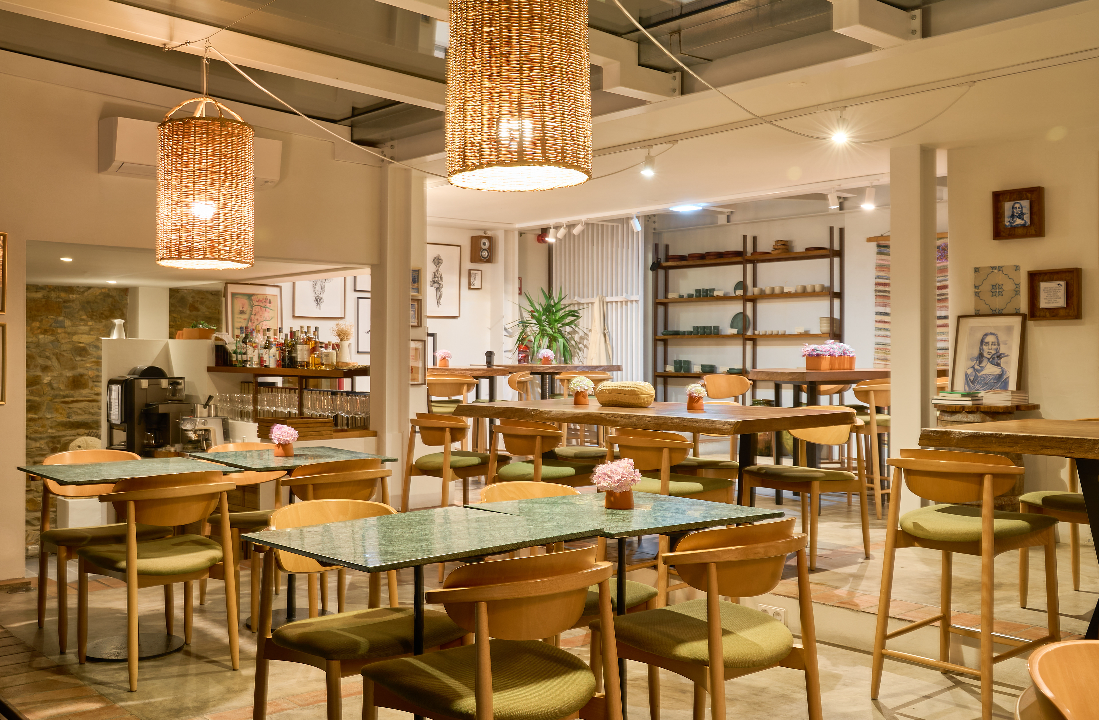 PT - A narrativa visual foca-se no diálogo entre texturas orgânicas e a luz no restaurante. O interior baseia-se numa paleta tátil onde a cortiça natural, a madeira solid e as fibras entrelaçadas encontram uma geometria minimalista.
