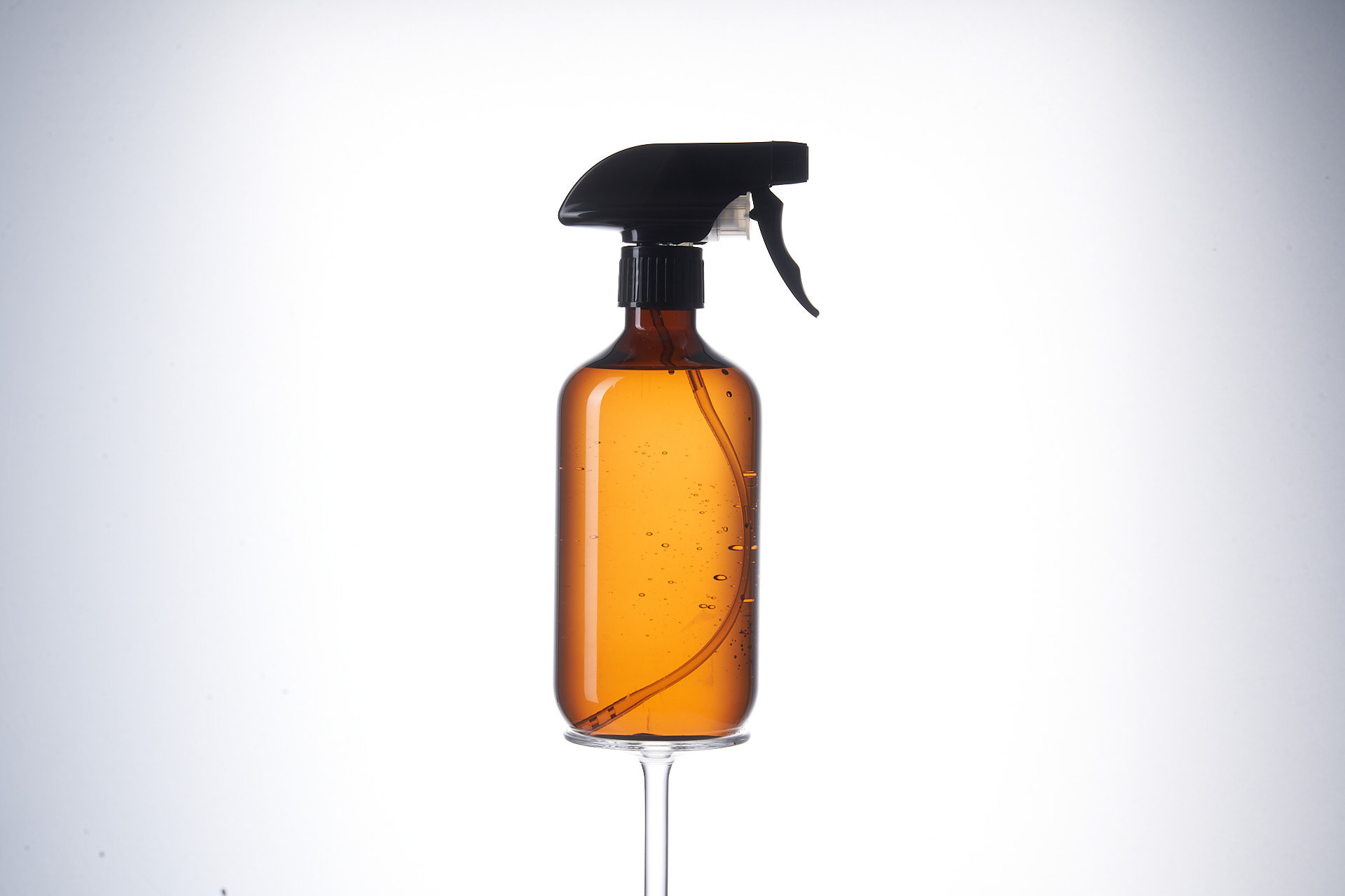 The amber spray bottle was photographed on a pure white background, ensuring maximum visibility and focus on the product itself. Careful attention was paid to illuminating the bottle to highlight its translucent quality and the liquid content, as well as the details of the black spray nozzle. The resulting photographs is ready for immediate use across various ecommerce platforms, meeting the high standards required for effective online product presentation.